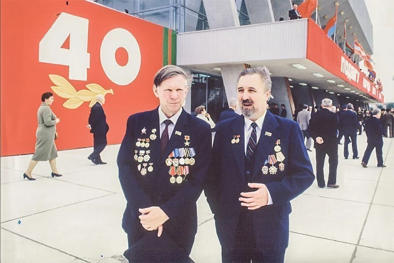 Народны пісьменнік Васіль Быкаў з кампазітарам Яўгенам Глебавым