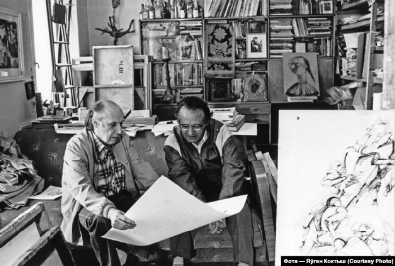 Мастак Арлен Кашкурэвіч і пісьменьнік Алесь Адамовіч